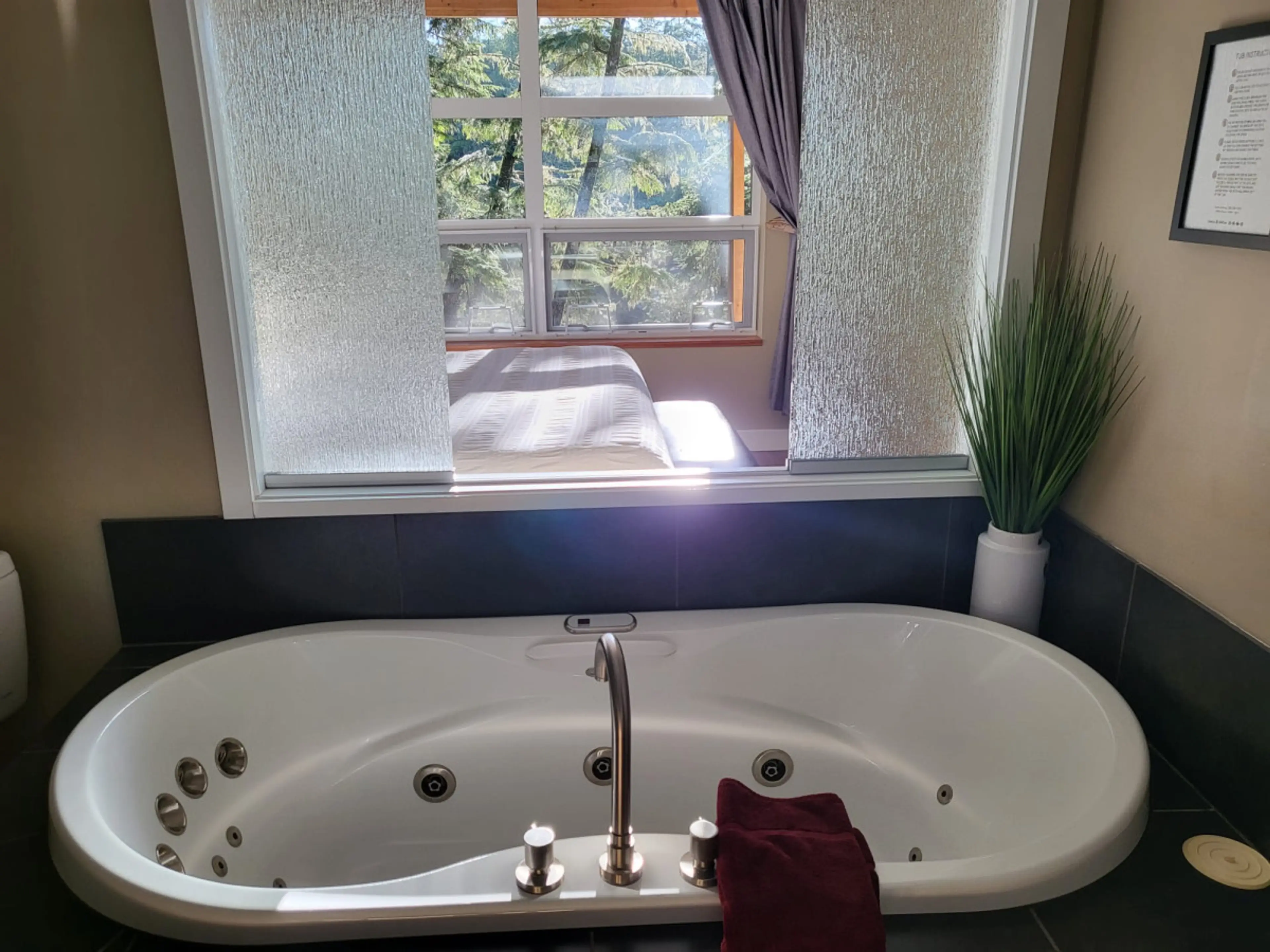 Positive: We are a BC senior couple, entertaining a senior friend on his first trip to Vancouver Island from Ontario. The condo was beautiful, providing more than two hotel rooms could offer. Very quiet location, close to the lighthouse trails. Comfortable modern furniture; excellent beds, well stocked kitchen with dishes, pots and pans. View from deck was beautiful: woods with deer walking past windows. We did not see a water view as ad stated. Ucluelet has so much to offer tourists. We bought fresh prawns, scallops to cook with our steak. Excellent fish/chip wagon on the Main Street. We ate lunch at their picnic tables, enjoying freshly caught Pacific cod. We have camped at Green Point many times. The beauty of the rain forest and Long Beach bring us back.